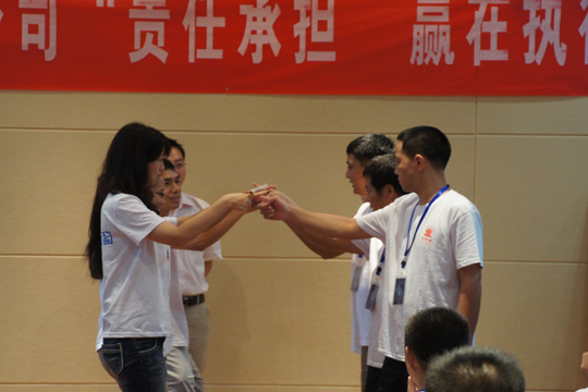 在主題為“合作、共贏,打造核心團(tuán)隊(duì)”的體驗(yàn)式拓展訓(xùn)練過(guò)程中,四特團(tuán)隊(duì)體驗(yàn)了一次不同尋常的拓展培訓(xùn)。四特團(tuán)隊(duì)按指導(dǎo)老師要求分為8個(gè)小隊(duì),各小隊(duì)擁有自己的隊(duì)名、隊(duì)長(zhǎng)、口號(hào)和隊(duì)歌。各小隊(duì)成員在拓展訓(xùn)練中為各自團(tuán)隊(duì)榮譽(yù)而奮力拼搏。在“看圖片對(duì)1-30進(jìn)行數(shù)字解碼”游戲過(guò)程中,各隊(duì)成員群策群力,用科學(xué)邏輯解碼思維。在總共三次解碼中,5個(gè)小隊(duì)成員勝利完成了解碼訓(xùn)練。參加拓展訓(xùn)練的四特團(tuán)隊(duì)在游戲中對(duì)團(tuán)隊(duì)形成了新認(rèn)識(shí),獲得了新知識(shí)。“不要拘泥于傳統(tǒng)思維模式、工作方式!”“要實(shí)現(xiàn)工作結(jié)果最優(yōu)化就要跳出傳統(tǒng)思維框架,尋求新方式、新思路。”大家紛紛分享各自的培訓(xùn)感受。