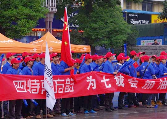 10月3日至10月13日,城運會圣火在江西省11個地級市傳遞,拉開七城會精彩序幕。四特作為主贊助商派出強大助威陣容,全程跟蹤火炬?zhèn)鬟f工作。在每個火炬?zhèn)鬟f城市,花團錦簇的四特東方韻形象彩車和活力四射的四特美女啦啦隊跟隨火炬手傳遞圣火;所在地的四特營銷團隊、經(jīng)銷商團隊則統(tǒng)一身穿四特東方韻POLO衫,揮舞加油棒在傳遞線路兩旁為火炬?zhèn)鬟f吶喊助威,使火炬?zhèn)鬟f現(xiàn)場成為歡樂的海洋。