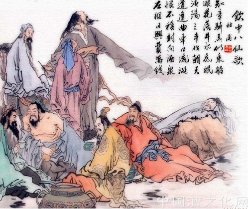雖然歷史上沒有這“飲中八仙”齊聚一堂的明確記載,但盛唐時各種酒會盛行一時,參與者甚眾。這“飲中八仙”,都是當時的名人,或同朝為官,或詩文相交,或意氣相投,我們知道,名人一向喜歡扎堆,他們八個聚在一次酒局的可能性就非常大。所以,大路堅信他們必聚在一起飲過酒,而且還不只一次,當然參與者可能還有些其他人。這種聚會,可能在白天,也可能在夜晚;可能在秋雨綿綿中舉杯把盞,也可能在春雷陣陣里開懷痛飲。總之,如果你不能證明他們沒在一起過,那你就要相信大路的說法,曾經(jīng)有過這么一次瀟灑快活的神仙酒局,杜甫用詩把這種場面記錄下來并傳于后世。