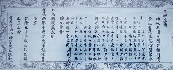 乾隆五十年(1785),四海承平,天下富足。適逢清朝慶典,乾隆帝為表示其皇恩浩蕩,在乾清宮舉行了千叟宴。宴會場面之大,實為空前。被邀請的老人約有三千名,這些人中有皇親國戚,有前朝老臣,也有的是從民間奉詔進京的老人。在座老人中有不少是飽學鴻儒,當眾吟詩聯(lián)句,即席用柏梁體選百聯(lián)句被史官記錄入史。乾隆皇帝還親自為90歲以上的壽星一一斟酒。當時推為上座的是一位最長壽的老人,據(jù)說已有141歲。當時乾隆和紀曉嵐還為這位老人做了一個對子,“花甲重開,外加三七歲月;古稀雙慶,內(nèi)多一個春秋。”根據(jù)上聯(lián)的意思,兩個甲子年120歲再加三七二十一,正好141歲。下聯(lián)是古稀雙慶,兩個七十,再加一,正好141歲。堪稱絕對。
